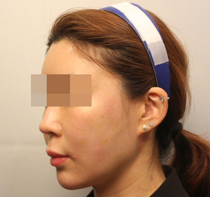 위 환자분의 경우를 예로 들어보면 좌측 광대가 우측 광대보다 꺼짐이 심한 편이라 좌측은 1.5cc / 우측은 1cc로 배분하여 시술을 진행한 것을 확인할 수 있죠.