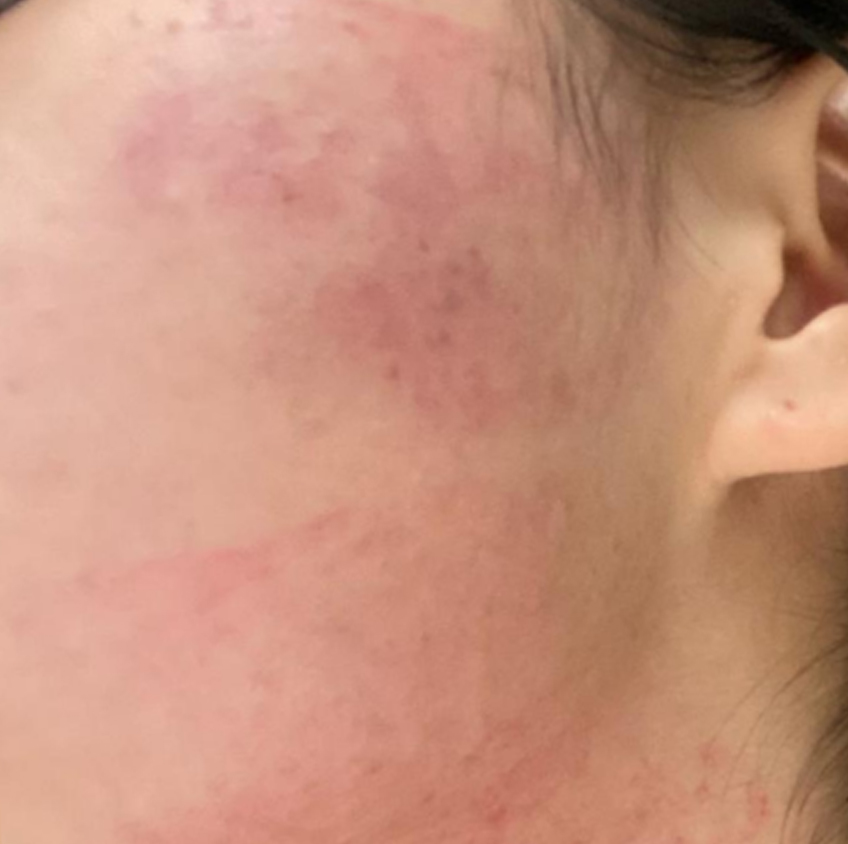 간혹 심한 분들은 위 환자분들처럼 홍반, 멍이 올라오기도 하는데 이 경우엔 1~2주 정도 회복이 필요할 수 있는데요. 그렇다고 해서 이런 부작용이 영구적으로 이어지는 경우는 거의 없으며 대부분 시간이 지나면 좋아집니다.