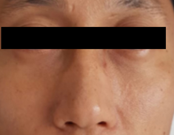 시술 전 모습을 보면 눈밑 고랑이 움푹 꺼지면서 음영이 지고, 다크서클이 심한 상태인데요.