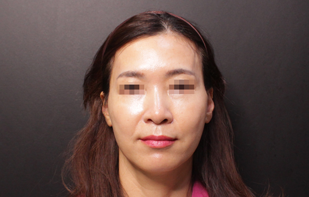 아직까지 삽입된 실로 인해 조직이 불안정한 상태이기 때문에 개선 효과가 크진 않지만 이전에 비해 처짐이나 윤곽 라인이 뚜렷해진 모습을 볼 수 있는데요.