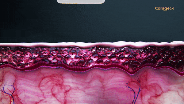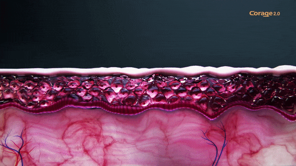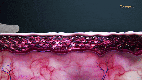 코레지 셀핏의 가장 핵심은 바로 마지막 단계인 스킨 글러브를 이용해 피부 속 노화된 섬유아세포(old Collagen/Elastin)의 탈락을 유도하고 새로운 섬유아세포(Baby Collagen/Elastin)를 생성하는 과정입니다.