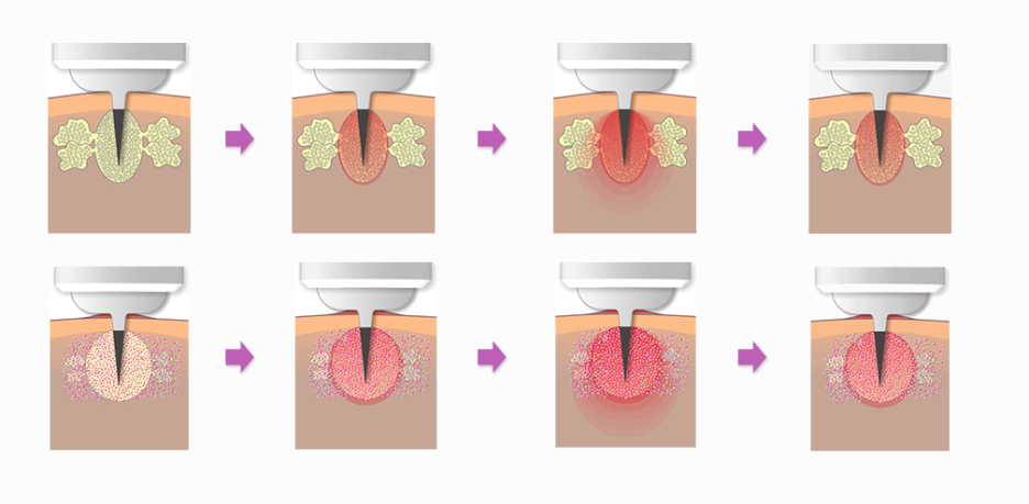 미세절연침은 피지분비가 과도한 부위에 RF Needle을 넣어 피지선을 파괴시키고, 피지 분비를 감소시켜서 여드름 재발을 막아주는 효과가 있습니다.