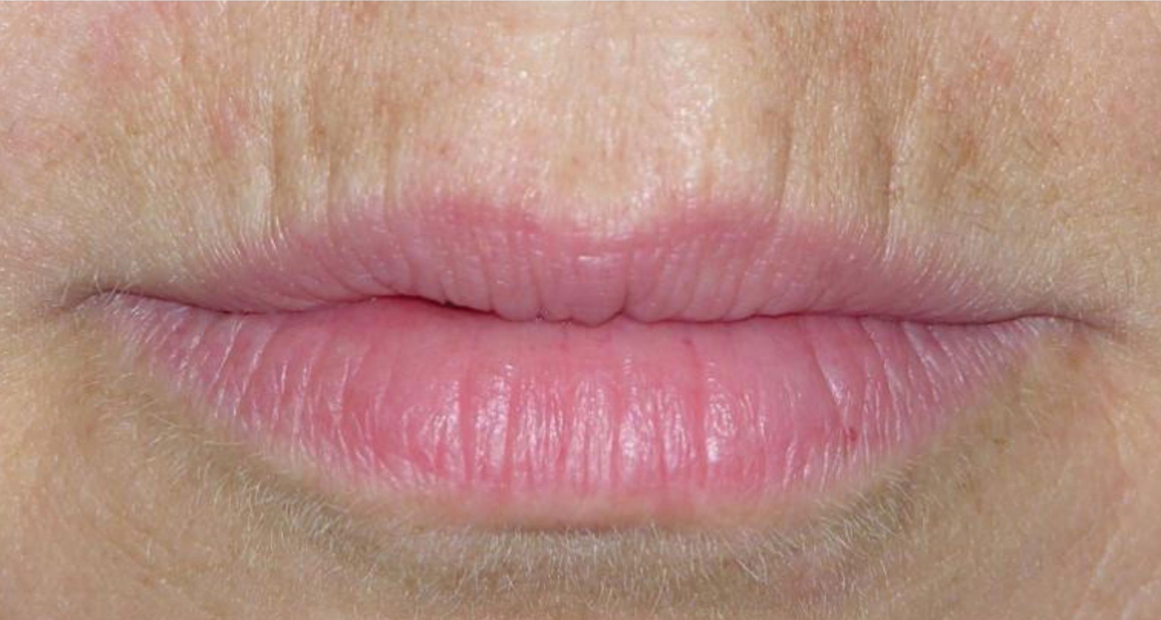 윗입술, 아랫입술 모두 세로 주름이 있는 상태이고, 아랫입술 주름이 조금 더 깊은 상태이죠.