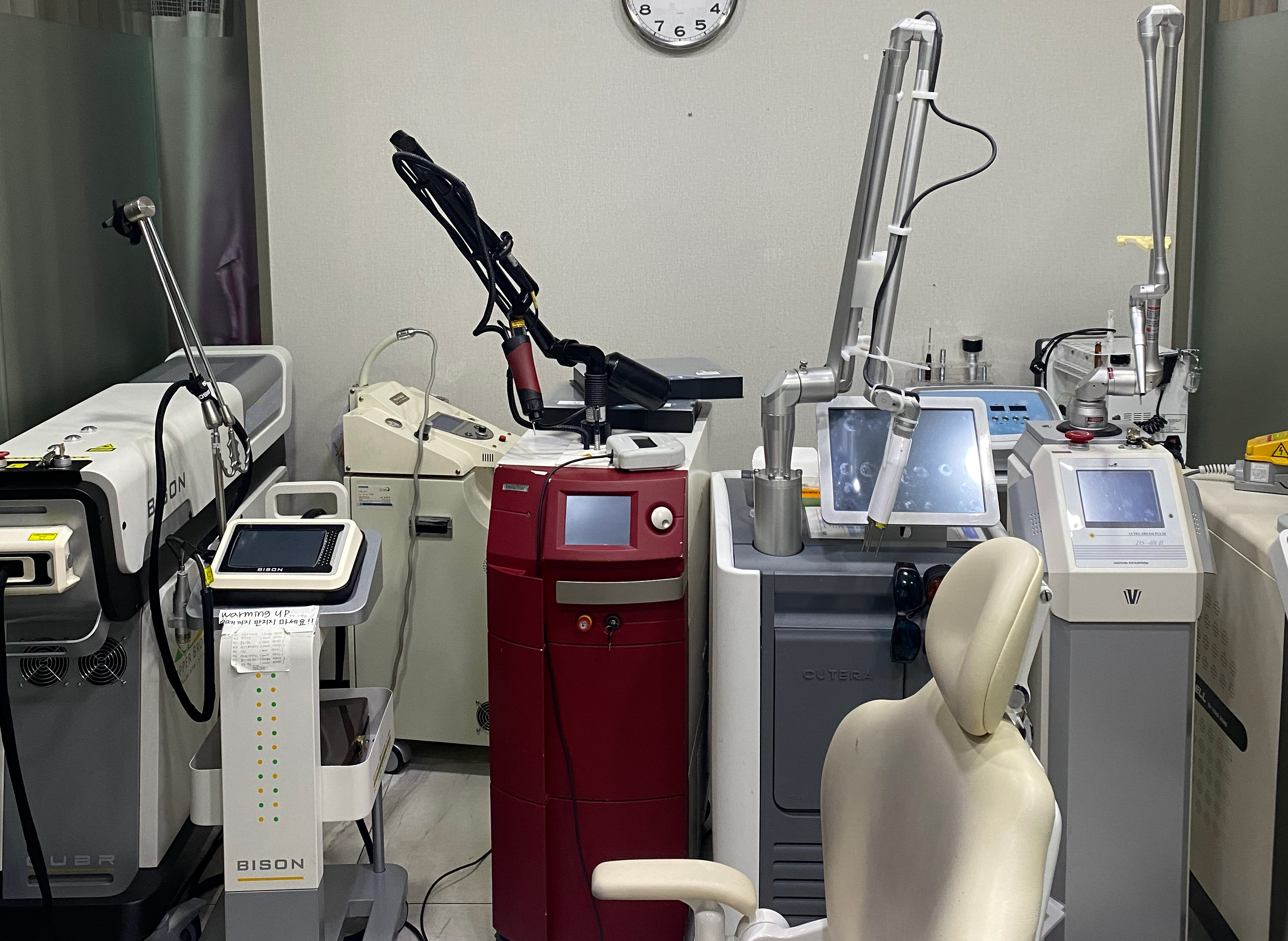 특히 레이저 장비의 경우 파장, 펄스폭, 출력 등이 다 다르다 보니. 다양한 장비를 보유하고 있으면 환자가 원하는 시술 부위나 병변 상태에 적절하게 치료를 진행할 수 있어. 저는 레이저 장비에 돈을 아끼지 않습니다.