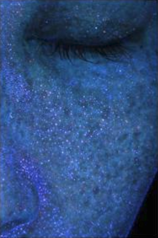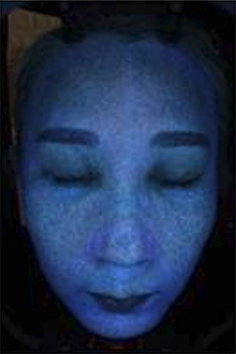 자외선광은 여드름을 치료할 때 많이 도움이 되는 장비로 피지의 분포와 여드름균도 확인할 수 있습니다.
