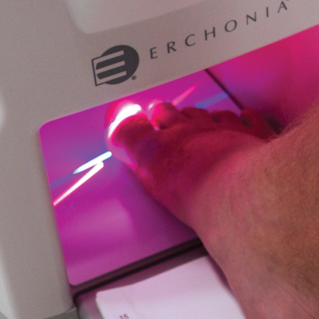 좌측의 루눌라를 보면 엄지발을 대고 빛이 해당 부위를 조사하고 있는데 핀포인트에 비해 범위가 훨씬 넓습니다. 레이저가 360도로 회전하기 때문에 발 전체에 골고루 전달되고 육안으로 발견하기 어려운 진균까지도 살균이 가능하다는 특징이 있습니다.