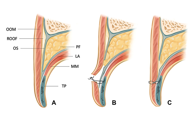 눈꺼풀에 작은 구멍(절개창)을 만들고 구멍으로 실을 통과시켜 쌍꺼풀 라인을 고정하는 수술법입니다.