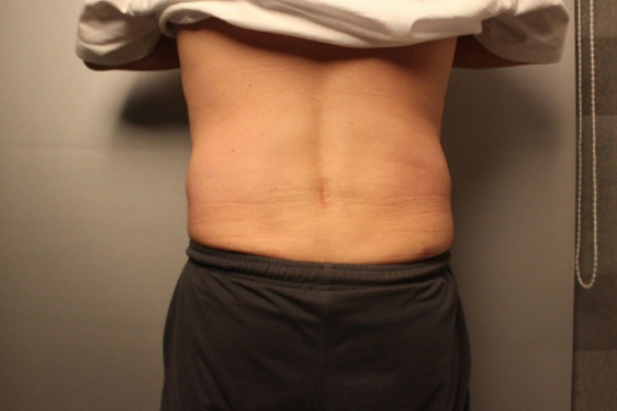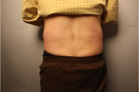 시술 전 과도한 지방으로 인해 튀어나온 살들이 시술 후 많이 들어가면서 옆구리 라인이 부드러워진 모습이죠.