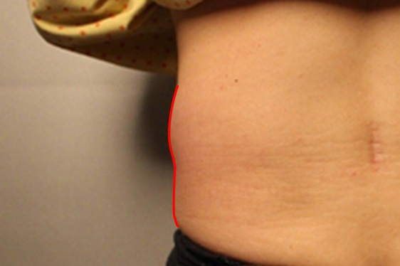위 환자분의 경우 1주일 정도 경과한 후 사진을 촬영했는데, 확실이 옆구리 라인이 달라진 것을 볼 수 있죠.