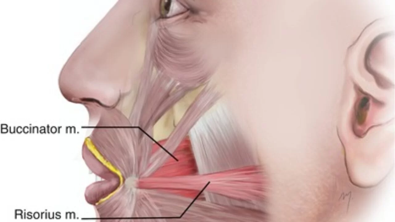 조금 더 정확하게 협근의 위치를 보여드리면, 저 위치의 근육이 위축되면서 볼꺼짐이 나타난다고 이해하시면 되겠습니다.