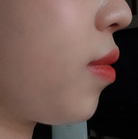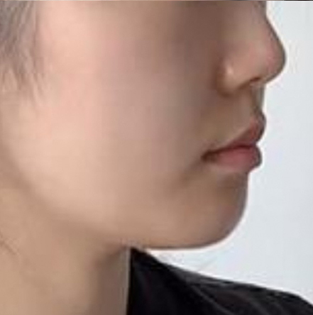 위 환자분의 모습을 보면 턱끝만 살짝 필러를 채워 넣어 뒤로 후퇴한 턱의 위치를 교정해준 상황인데요.