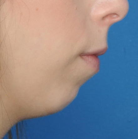 앞서 본 사례들은 아래 턱 전체가 뒤로 후퇴하면서 인중 라인부터 전체가 움푹 들어가보이는 모습이었다면 위 사례는 '턱끝'만 뒤로 후퇴한 상태입니다.