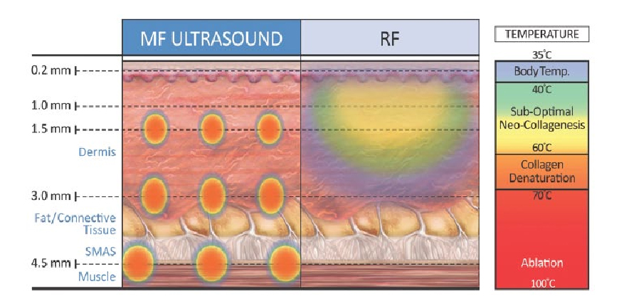 다시 본론으로 돌아와서 이러한 피부 두께의 차이가 울쎄라와 써마지 효과에 어떤 영향을 미치게 되는 것일까요.