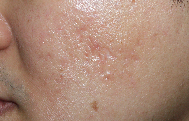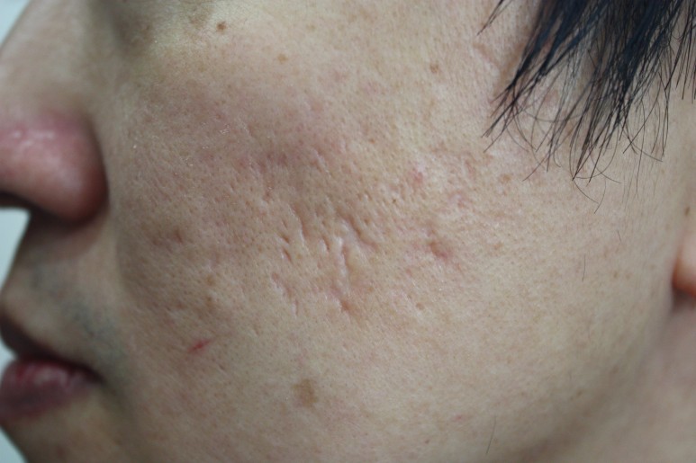 여드름패인흉터 치료 전, 치료 직후 모습