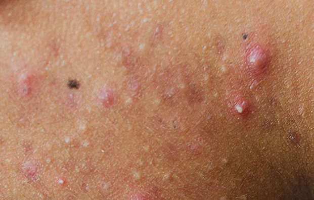 사진에 보이는 것처럼 과도한 피지로 인해 모공이 막히면 내부에 피지가 쌓임과 동시에 염증을 일으켜 화산과 같이 볼록하게 돌출되지요.