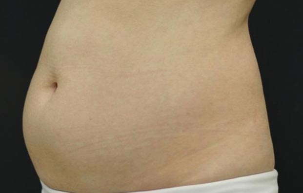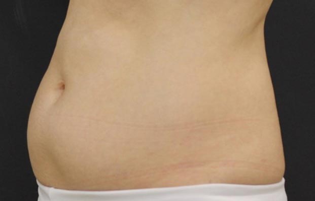위 사례에서도 사진상으로 판단하기는 어려우나 옆구리와 복부 중심부에 셀룰라이트로 의심되는 울퉁불퉁한 살들이 보이는데요. 시술 후 이런 부위가 제법 매끄러워진 것을 확인할 수 있죠.