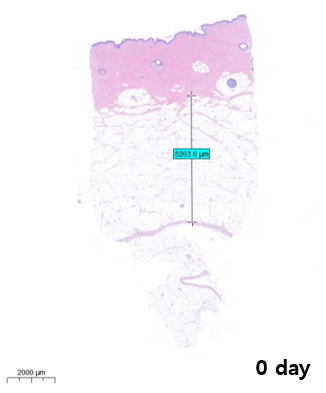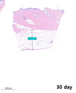 실제 노블쉐이프 시술 후 피하지방층의 두께 변화를 관측한 단면도입니다.