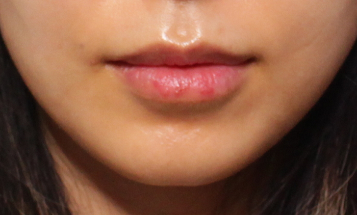 이런 상태라면 입술 전체에 볼륨을 주지 않고 윗입술에만 약간의 볼륨만 주어도 상당히 호전된 모습을 기대할 수 있는데요. 자연스러운 입술을 원하셨던 환자분이라 1cc 정도의 용량으로 시술을 진행했습니다.