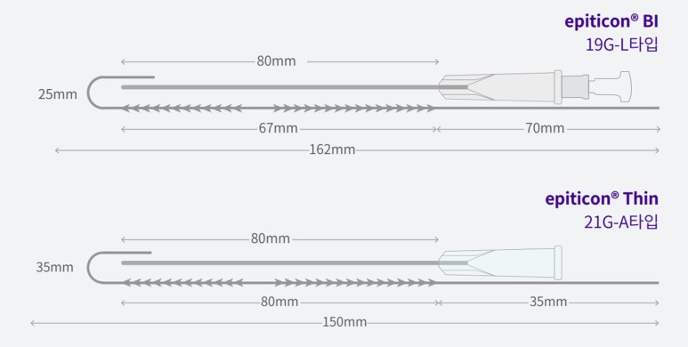 보통 니들의 끝이 뭉툭한 것을 '캐뉼라'라고 합니다. 캐뉼라의 장점이라면 니들을 삽입할 때 혈관, 신경 손상을 크게 줄여주어 시술 후 멍이나 붓기가 심하지 않다는 장점을 가지고 있습니다.