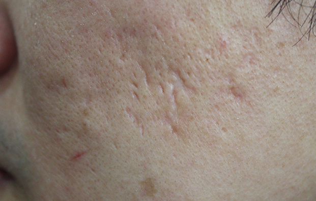 여드름흉터치료 전, 치료 직후