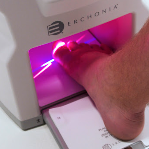 우측의 루눌라를 보면 엄지발을 대고 빛이 해당 부위를 조사하고 있는데 핀포인트에 비해 범위가 훨씬 넓습니다. 레이저가 360도로 회전하기 때문에 발 전체에 골고루 전달되고 육안으로 발견하기 어려운 진균까지도 살균이 가능하다는 특징이 있습니다.