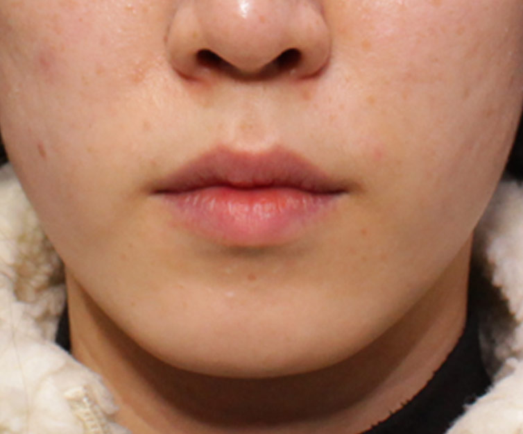 시술 직후라 붓기를 감안해야 하지만 시술 전보다 입술 가로길이가 연장되고 위, 아래 입술 볼륨이 채워지면서 훨씬 입체감 있는 입술로 바뀐 것을 확인할 수 있죠.