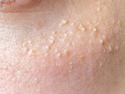 이는 태어날 때부터 있는 일차성과 후천적으로 생긴 이차성으로 구분되며 모양은 거의 같습니다. 눈꺼풀이나 눈 주변, 볼에 잘 생기고, 사이즈는 1mm 내외입니다.