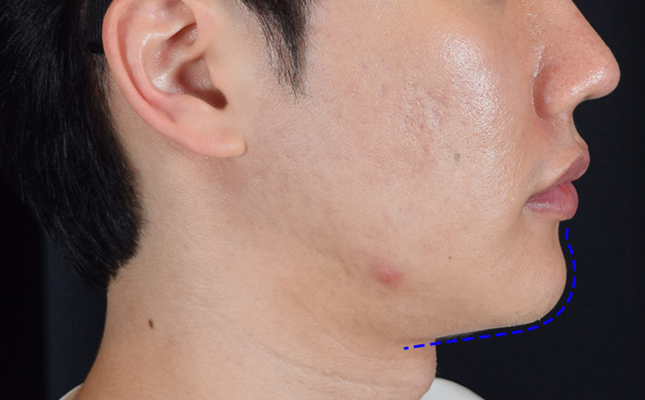 환자분의 경우 얼굴살이 많지 않은 편인데도 불구하고, 턱 주변 피부 처짐이 심해 이중턱이 생긴 케이스였습니다.