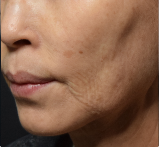 시술은 레이저 리프팅(트루스컬프) + 콜라겐 주사 시술을 병행했으며, 시술 후 모습을 보면 약간의 주름은 남아있지만 상당 부분 개선된 것을 볼 수 있죠.