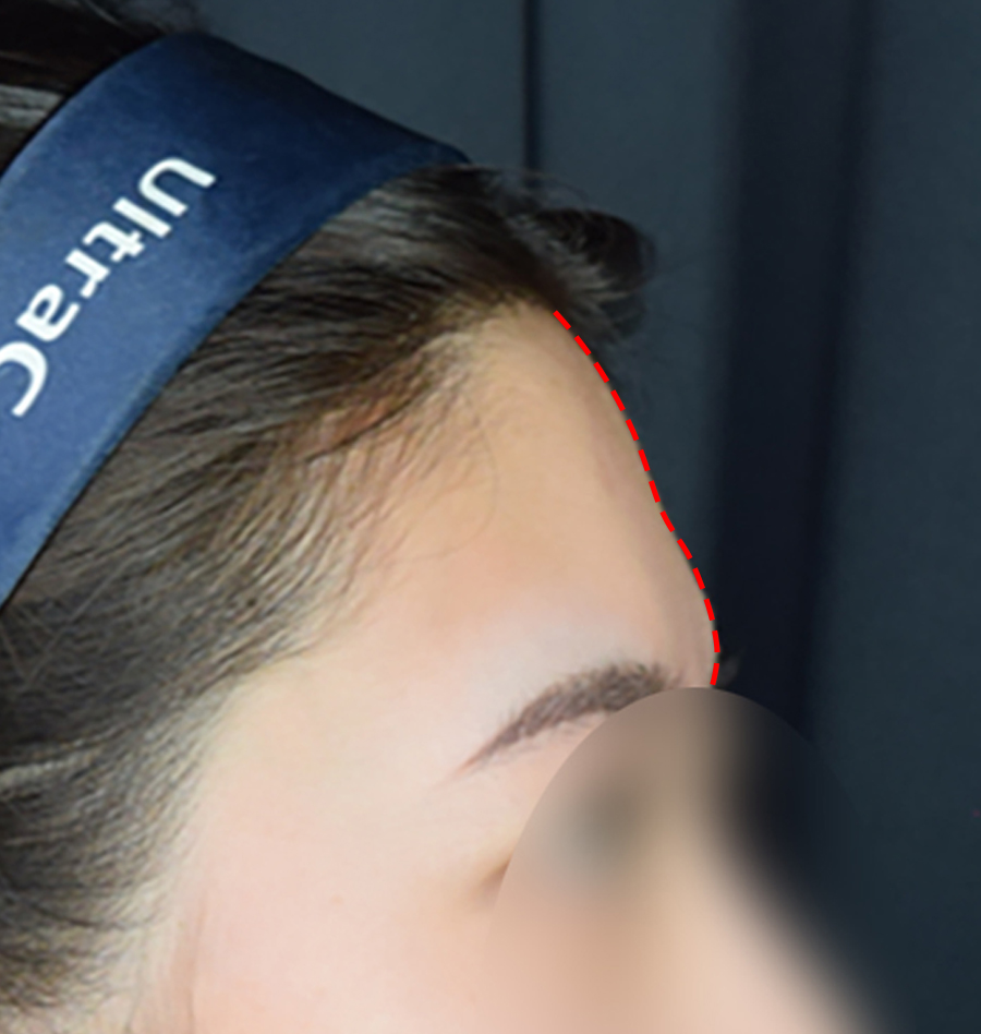 꺼진 부분만 개선해도 이마가 훨씬 예뻐보이긴 하지만, 이마 라인을 전체적으로 만들어주는 것에 비해서는 상대적으로 결과가 아쉬운 경우가 많거든요.