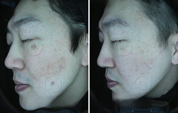 흑자 레이저 치료 1회 전, 후 모습입니다.