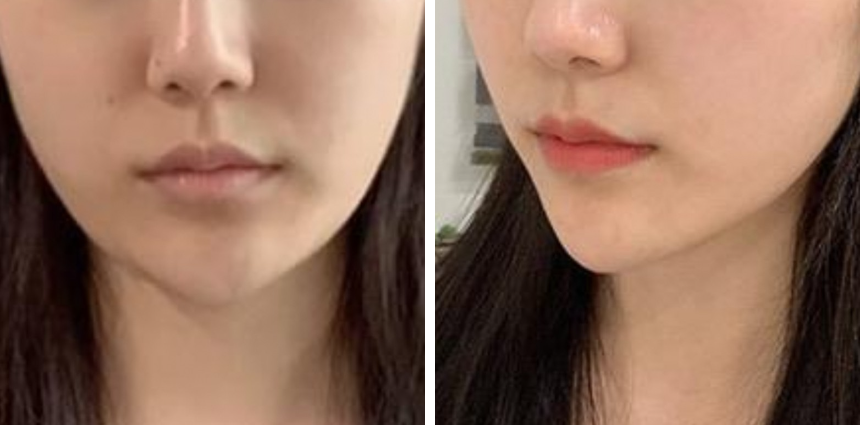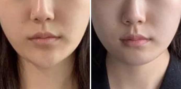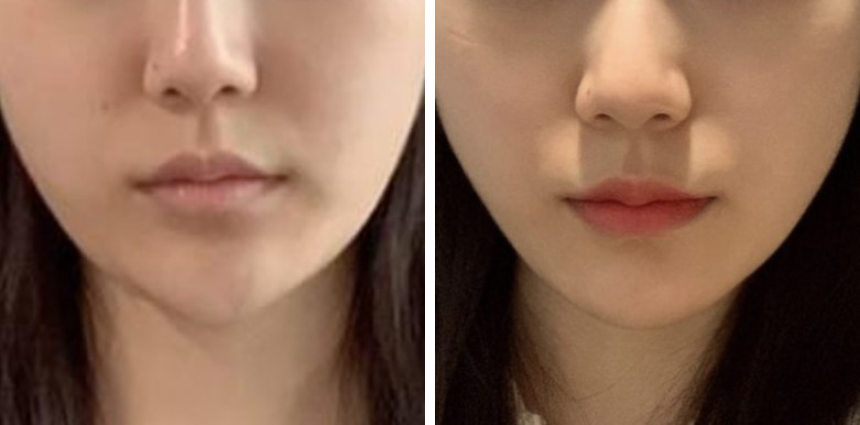 우측 사진이 필러를 다 제거한 후 모습인데 오히려 턱 라인이 부드러워지면서 훨씬 자연스러운 느낌을 주네요.