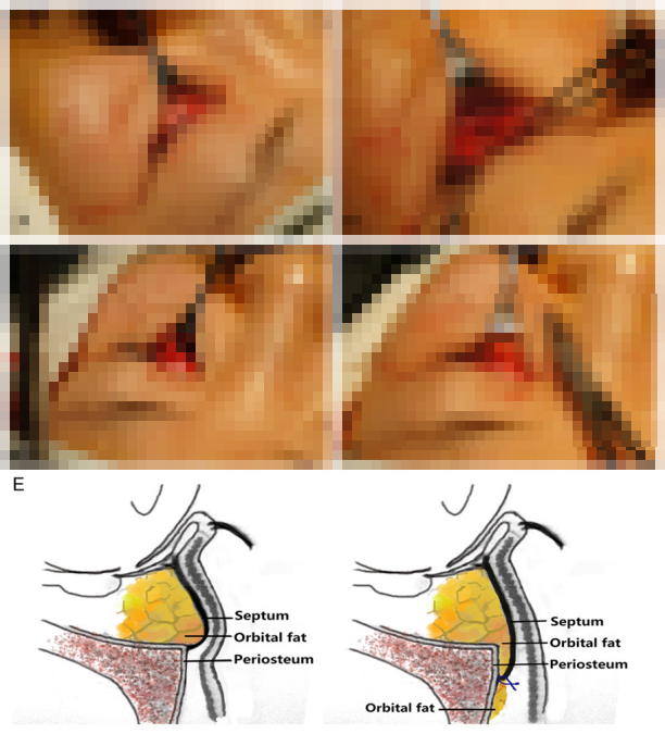눈밑지방재배치 수술은 눈 안쪽 결막을 미세하게 절개하고, 눈밑의 지방을 제거하거나 재배치하여 꺼진 부위는 보강하고 돌출된 부분은 편평하게 만들어주는 수술입니다.