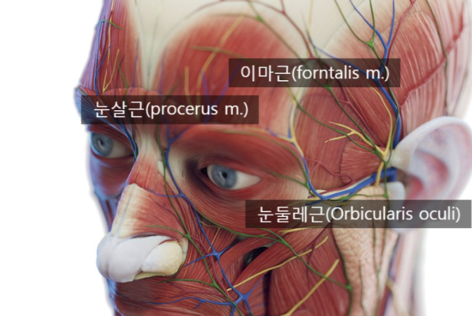 이마의 경우 이마근, 눈살근, 눈둘레근 등 다양한 근육 조직이 있고 이런 근육들의 움직임이 너무 과하면 필러가 해당 근육 부위로 이동해 흘러내린듯한 문제가 발생할 수 있습니다.