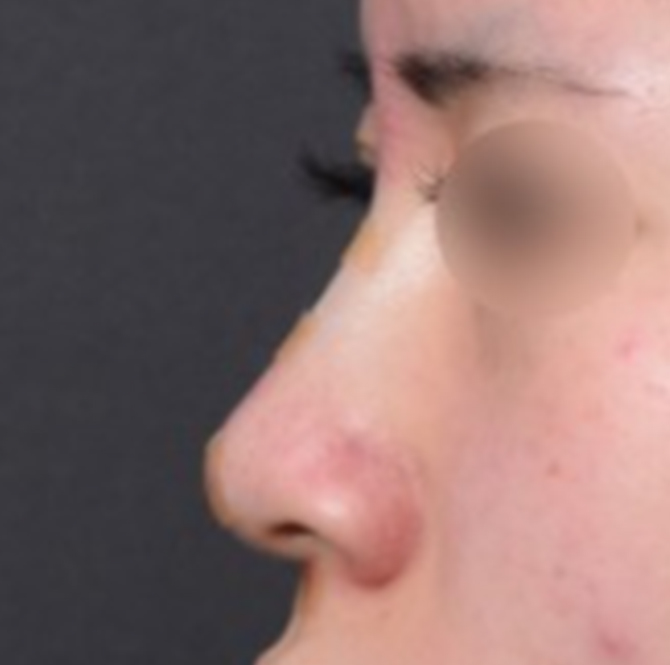 돌출된 콧등뼈를 기준으로, 코 전체 라인의 높이를 맞춰준 모습입니다.