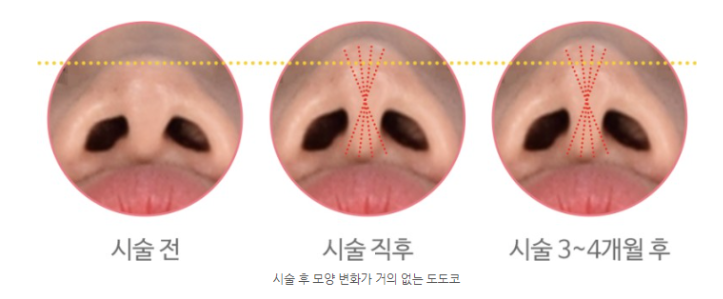 도도코 시술 전, 직후 모습입니다.
