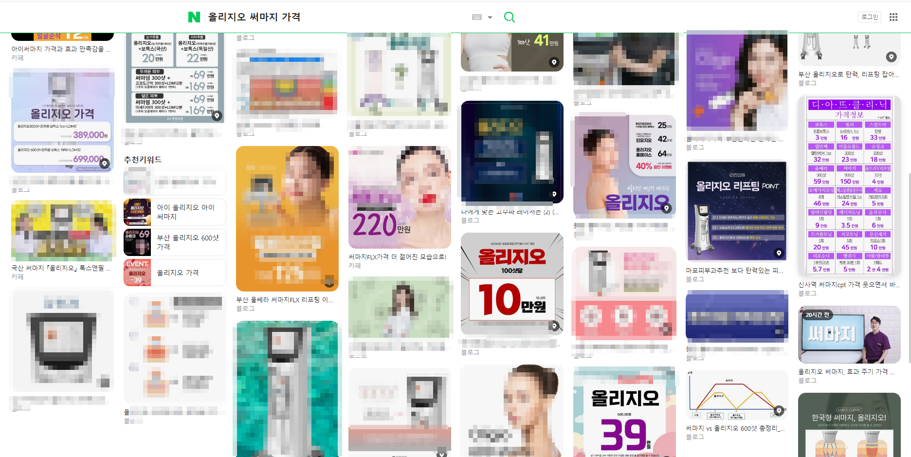 온라인상에서만 검색해보면 올리지오, 써마지의 시술 가격을 어렵지 않게 찾아볼 수 있는데요.