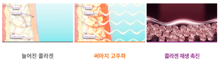 써마지와 올리지오 모두, 위와 같이 핸드피스와 접촉한 피부에 고주파 에너지가 전달되어 열 자극을 주고, 콜라겐 응고·재생·촉진을 유도해 신생 콜라겐을 생성하여 피부의 탄력, 피부결 등 전체적인 피부 컨디션 향상을 기대할 수 있는 시술이라고 보면 되겠습니다.