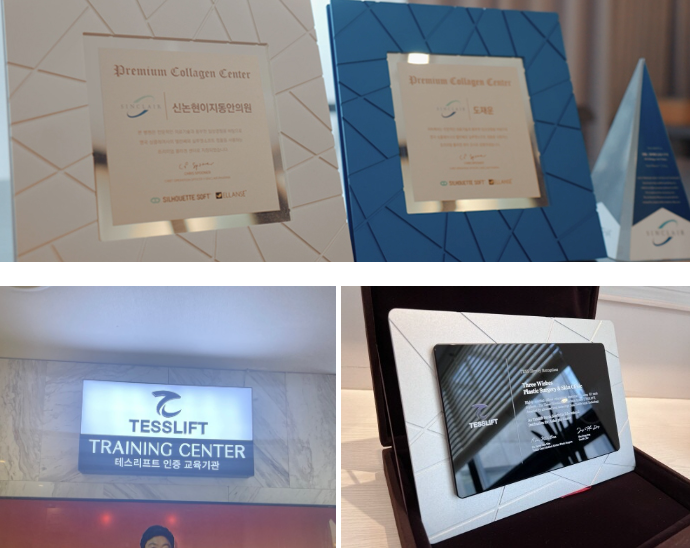 여러분들도 잘 알고 있는 실루엣소프트(Silhouette Soft) 제조사인 싱클레어사 선정한 키닥터이자, 프리미엄 콜라겐 센터 등급의 병원 및 APAC 50(아시아 탑 50 병원)이고.