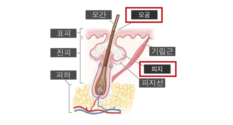 털이 밖으로 나오는 구멍을 말하며, 모공 주변에는 다양한 구조물들이 존재하는데요. 대표적으로 모공 아래에는 피지선이라는 기름샘이 존재하며, 이곳에서 만들어진 피지가 모공을 통해 밖으로 배출되는 역할도 합니다.