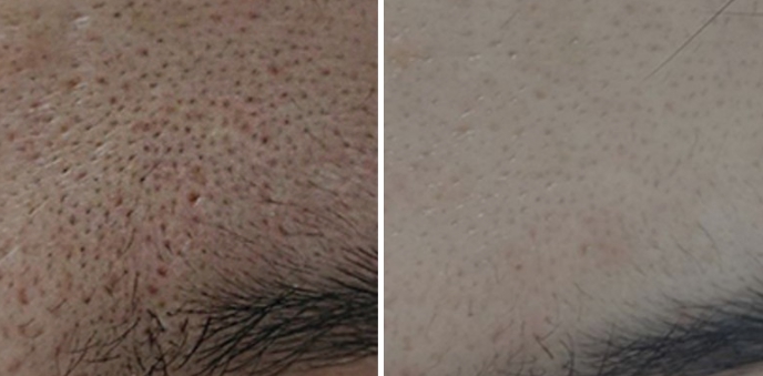 그러나, 이런 결과와 달리 대부분의 환자분들은 위와 같이 잠깐 모공이 좋아졌다가 다시 원래대로 확장되거나 효과가 미비한 경우가 많았을 텐데요.