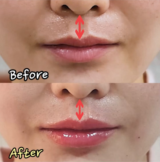 위 환자분의 경우, 전체적인 입술 볼륨도 부족하고 아랫입술에 비해 상대적으로 윗입술 볼륨이 많이 부족했던 상태라 윗입술에 포커스를 맞춰 시술을 도와드렸는데요.