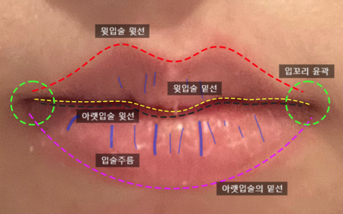 윗입술, 아랫입술, 입꼬리, 입술 전체 등