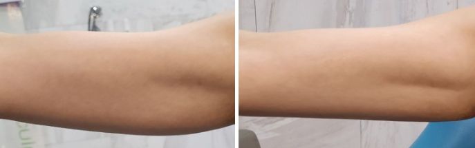 트루스컬프ID 이용한 팔뚝살제거 시술 전, 후 모습입니다.