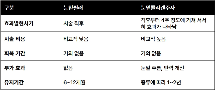 눈밑필러, 눈밑콜라겐주사 모두 굉장히 좋은 시술이지만 약간의 차이는 있지요?