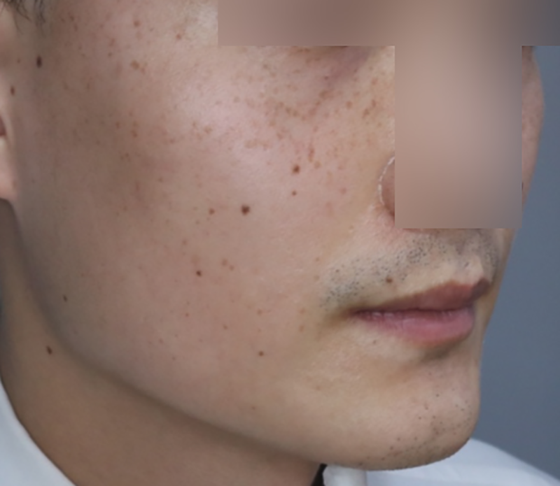시술 후 모습을 보면 깊은 색소들은 전반적으로 많이 옅어졌고, 이미 옅은 색소들은 많이 사라진 모습인데요.