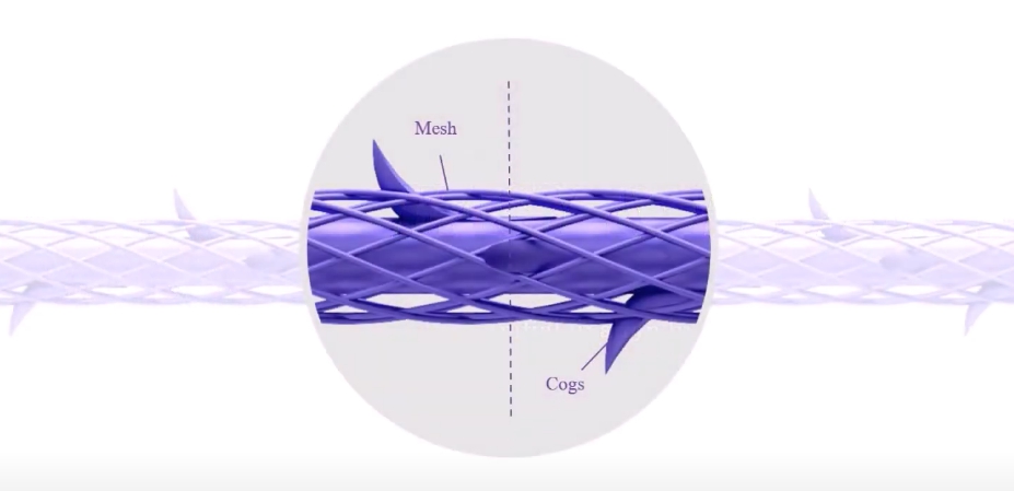 보통 돌기가 달려 있는 실을 코그(Cog)실이라고 하는데, 테스리프트는 실이 3D 원통형 매쉬(Mesh) 구조로 이루어져 있습니다.