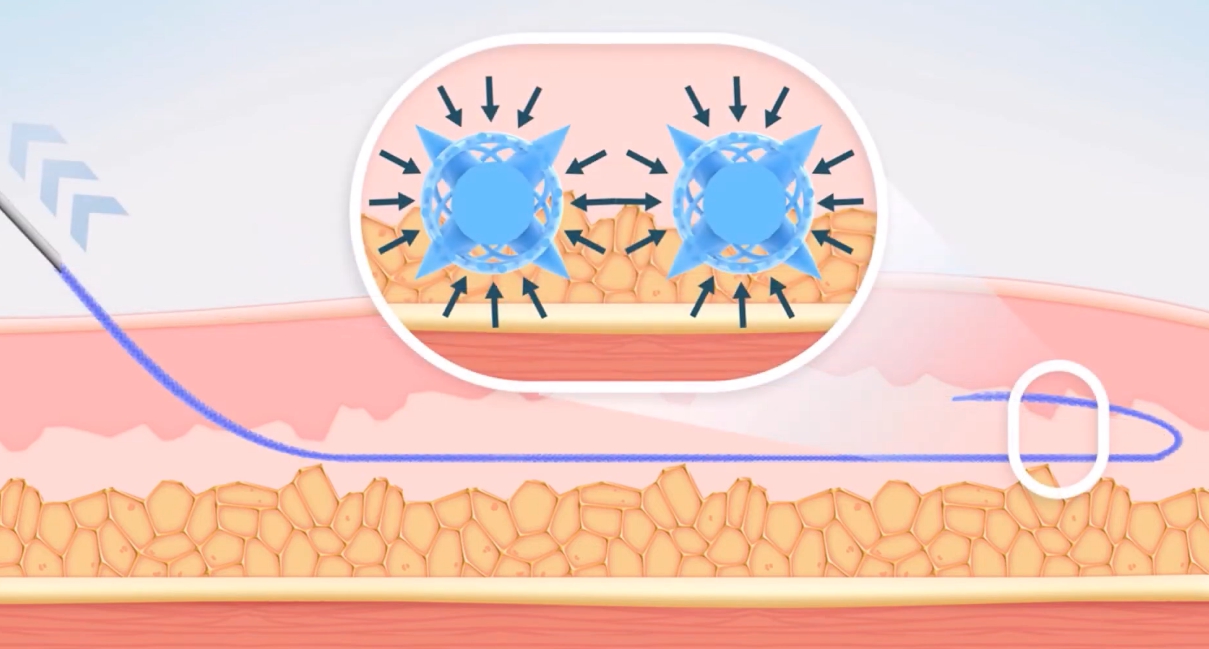 초기 고정 이후 메쉬 안쪽으로 조직이 유착되고 힘이 돌기에서 메쉬로 분산되면서 더욱 강력하고 자연스러운 리프팅 효과를 줄 수 있구요.
