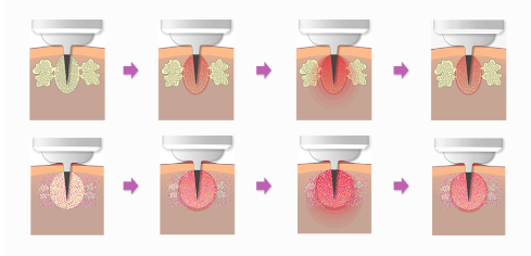 더마아크네의 미세 절연침은 피지선을 파괴시켜 과도한 피지 분비를 줄여주어 여드름 완화에 큰 도움을 줍니다.
