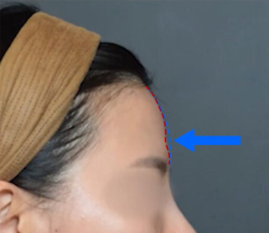 반대로 주입 용량을 조금 더 늘려서 꺼짐/함몰 부위를 수복하면서 전체적인 이마 라인을 개선하는 방법도 있는데요.